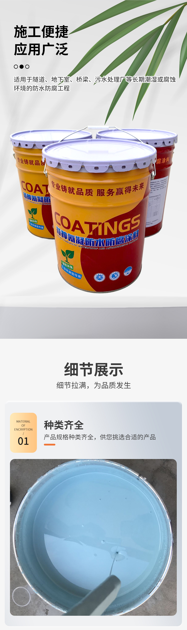 氰凝防腐涂料 高抗拉强度 用于工程楼顶施工 漆膜坚韧 坦涂